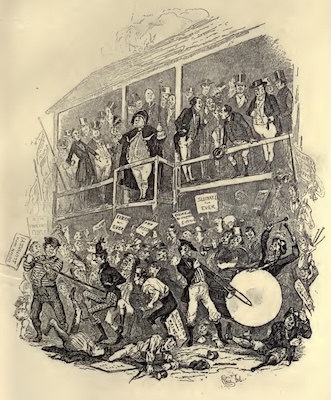 ‘Mr. Pott looked dubiously at Bob Sawyer for some seconds, and, turning to Mr. Pickwick, said— “You have seen the literary articles which have appeared at intervals in the Eatanswill Gazette in the course of the last three months, and which have excited such general—I may say such universal attention and admiration?” “Why,” replied Mr. Pickwick, slightly embarrassed by the question, “the fact is, I have been so much engaged in other ways, that I really have not had an opportunity of perusing them.” “You should do so, Sir,” said Pott, with a severe countenance. “I will,” said Mr. Pickwick. “They appeared in the form of a copious review of a work on Chinese metaphysics, Sir,” said Pott. “Oh,” observed Mr. Pickwick—”from your pen I hope?” “From the pen of my critic, Sir,” rejoined Pott with dignity. “An abstruse subject I should conceive,” said Mr. Pickwick. “Very, Sir,” responded Pott, looking intensely sage. “He crammed for it, to use a technical but expressive term; he read up for the subject, at my desire, in the Encyclopaedia Britannica.” “Indeed,” said Mr. Pickwick, “I was not aware that that valuable work contained any information respecting Chinese metaphysics.” “He read, Sir,” rejoined Pott, laying his hand on Mr. Pickwick’s knee, and looking round with a smile of intellectual superiority, “he read for metaphysics under the letter M, and for China under the letter C; and combined his information, Sir!”’[2]