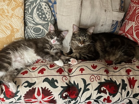 Opening my eyes to uncertain light, I can hear the table-tennis ball moving in the kitchen and the hall, knocking against skirting-boards and doorframes. I get up for a pee and a small grey tabby runs in to check on my progress and brush against my legs. Getting back into bed, I see that it’s 03:50. Moments later, the table-tennis ball is on the move again.
