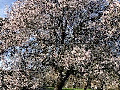 The year turns to meteorological spring. Blue sky, crisp air, early blossom, some trees apparently having had advance warning of this.