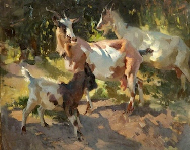 And he will. He is one young Australian artist and one five shilling a week cottage away from salvation: ‘The dusk was falling as I approached my isolated, sixteenth century abode that had a leaky, red-tiled roof and defective diamond-framed casements. It stood under a darkling bank. . . . And you think that the half-crown dog was an extravagance! I assure you that he was not. The floors sagged, the paper fell in scrolls from the walls. There was more than a bushel’s bulk of starling’s nest in the downstairs ingle.’[2]