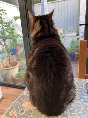 There seem to be more people than usual devoting their time to shouting into phones or at dogs, heard rather than seen, or glimpsed between branches or benches. A man wearing a cloth cap and an alarming neck tattoo scatters broken biscuits from a bag as he walks, to more than a dozen crows and one slightly shifty magpie (‘Yeah, I’m a crow. Who’s asking?’). A second man passes me, marching like a robot, legs thrown out, with a can of beer gripped in each outstretched hand; a teenaged schoolgirl, one of three, having an emotional moment, turns her tearstained face away from me as I pass and one of her friends says: ‘I didn’t meant to hurt you, Lily, but you shouldn’t have said—‘. And on an upper path, a woman running towards me; I cross over to make room for her; she smiles and turns sharply into the play area ten yards ahead, to crouch in front of a swing on which her child is sitting, watched over by a friend.