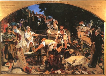 ‘Old Verlaine’ came over more than once, firstly in 1872, in the company of Arthur Rimbaud (whom he later shot and wounded, in Brussels, another story), settling for a while in rooms in Howland Street off the Tottenham Court Road and, on a second visit shortly afterwards, in Camden Town. They seem to have dropped in on one of the soirées at the Fitzroy Square home of Ford’s maternal grandfather, the painter Ford Madox Brown and his second wife Emma.[5] In October 1893, at the suggestion of William Rothenstein, Verlaine arrived to lecture and read his poetry, in London and in Oxford. Ernest Dowson recorded that, arriving in the small hours of the morning, Verlaine was greeted by the poet and critic Arthur Symons, ‘bearing a packet of biscuits and a bottle of gin’. He gave his first lecture at Barnard’s Inn on 21 November and two days later arrived in Oxford, to be met by Rothenstein and a man named York Powell, of Christ Church (Icelandic scholar, authority on Roman Law, boxing and Middle High Dutch. He also knew Hebrew and Old Irish). Verlaine lectured on contemporary French poetry ‘in the room behind Mr Blackwell’s shop’ and was so enamoured of the city—‘Ô toi, cité charmante et mémorable, Oxford!’— that prising him out of it necessitated both escorting him to the train and withholding his lecture fee until he was safely on the train for London.[6]